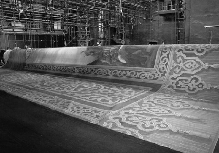 Возвращение истории: в Большой театр привезли реконструированный парадный занавес середины XIX века.