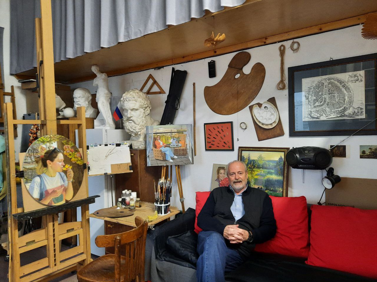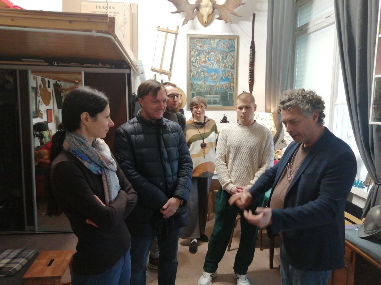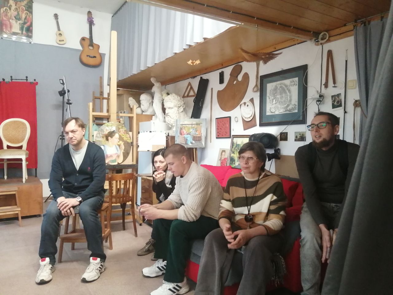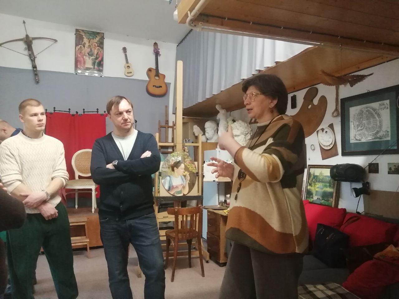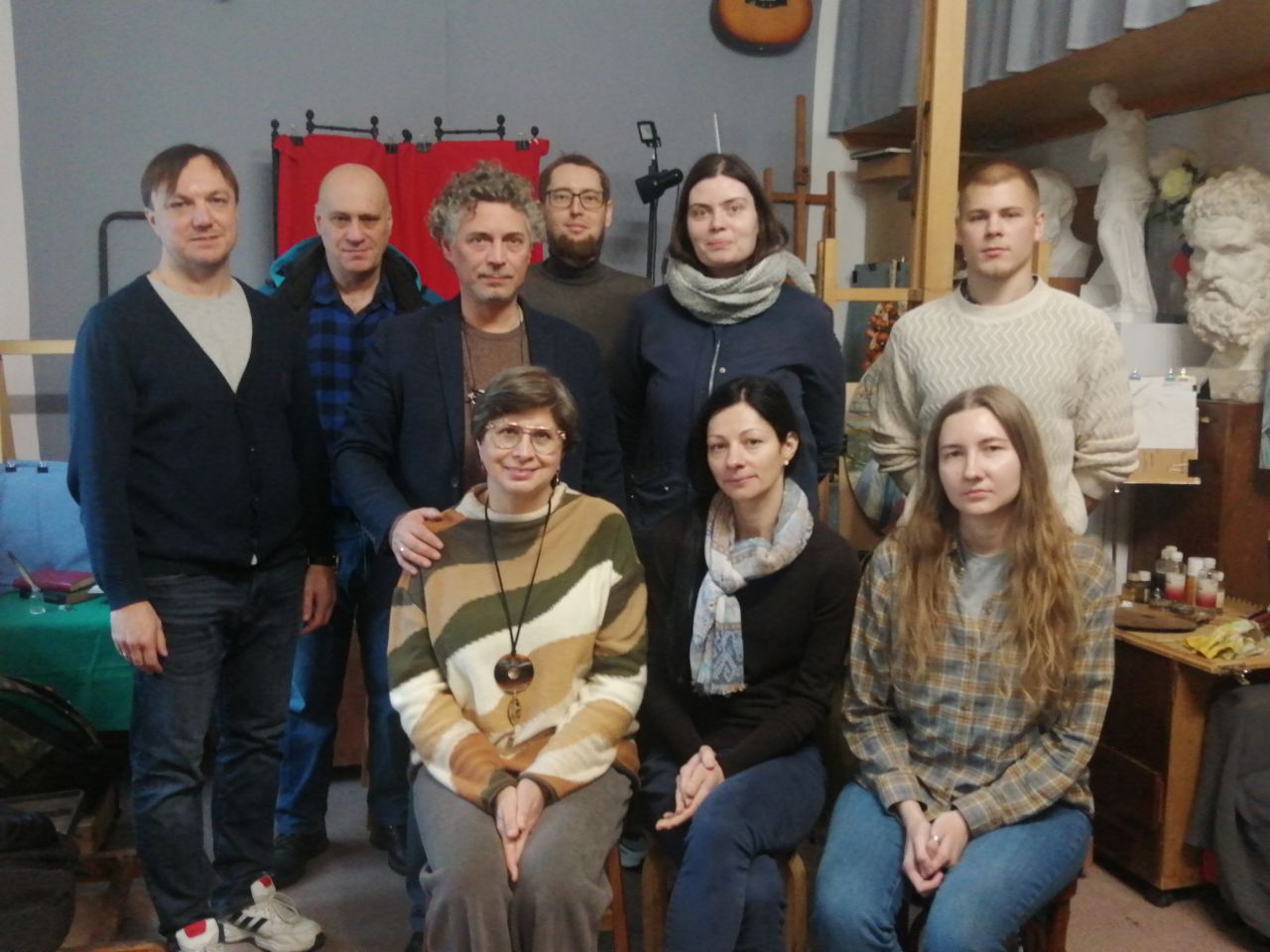 «Студенты, вместе с преподавателем института святого Фомы, Натальей Фёдоровной Боровской, провели свой субботний день в мастерской художника Владимира Чёрного. Встреча прошла в очень тёплой атмосфере в уникальном месте. Художник поделился своим путем живописца и преподавателя. Участники этой встречи получили вдохновение на новые учебные и творческие свершения.»