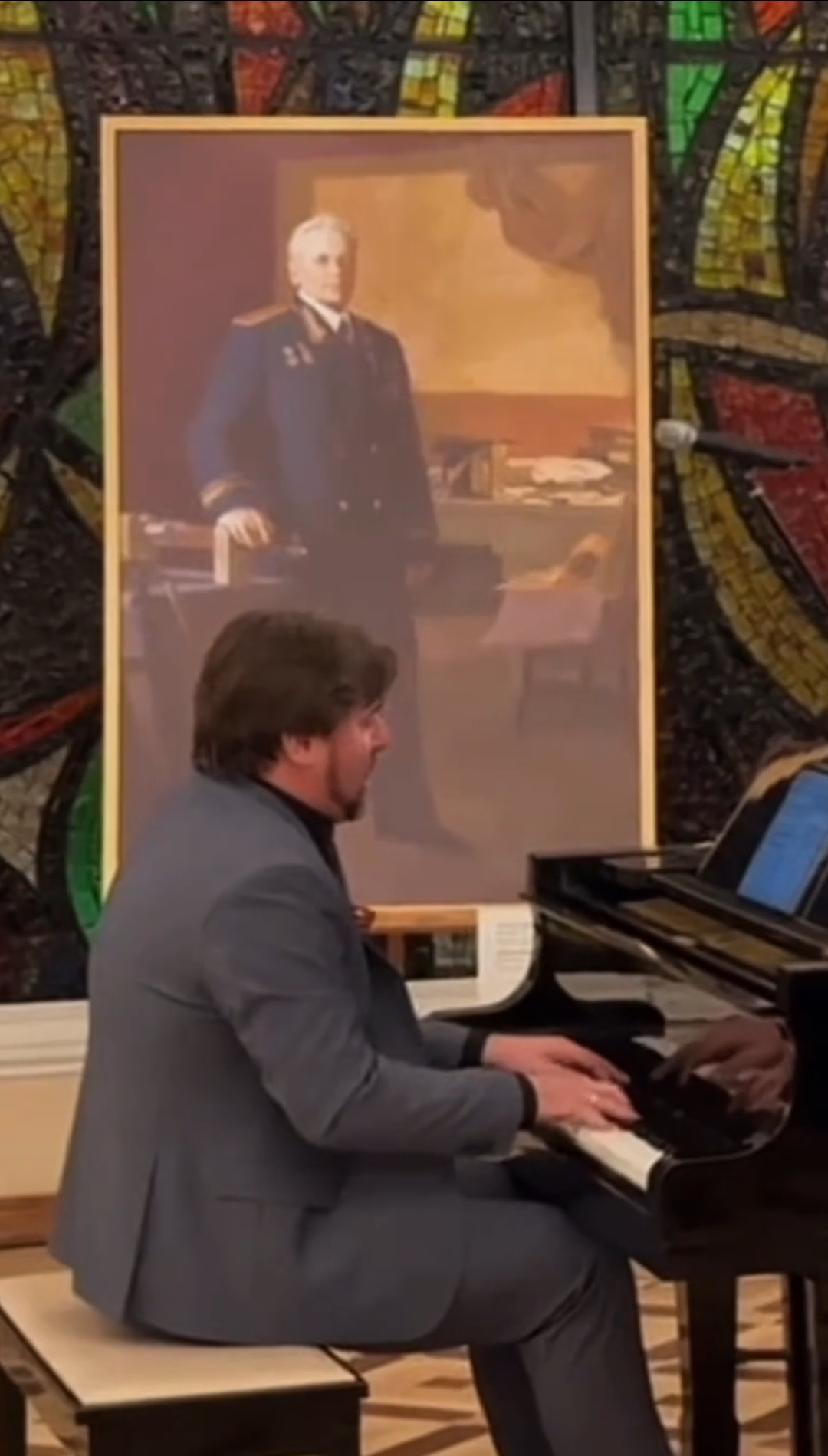 «9-го мая, в День Победы, Российская Академия Живописи, Ваяния и Зодчества Ильи Глазунова была представлена в своих работах, посвященных теме нашей Победы в Великой Отечественной Войне, в США, в Нью-Йорке в Постоянном Представительстве Российской Федерации при ООН на торжественном государственном приеме по случаю 80-й годовщины Победы.»