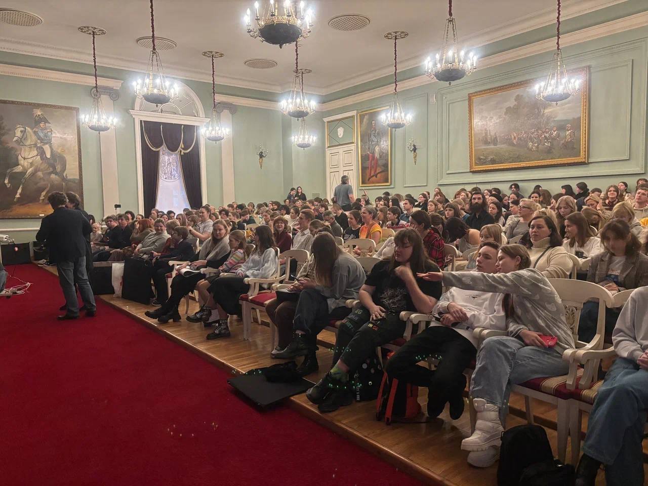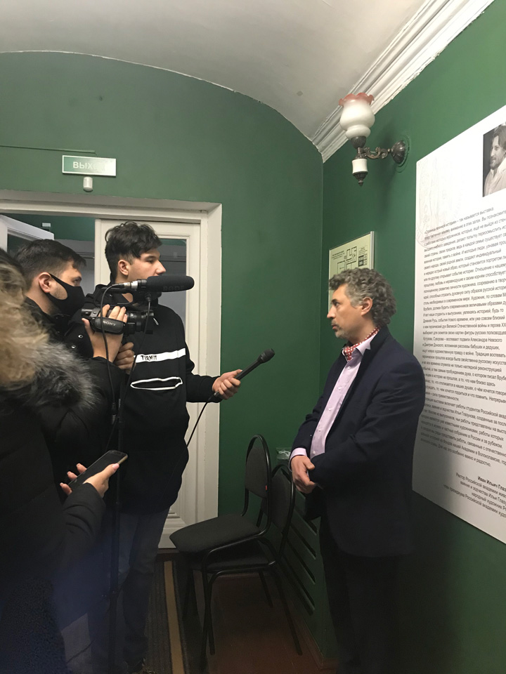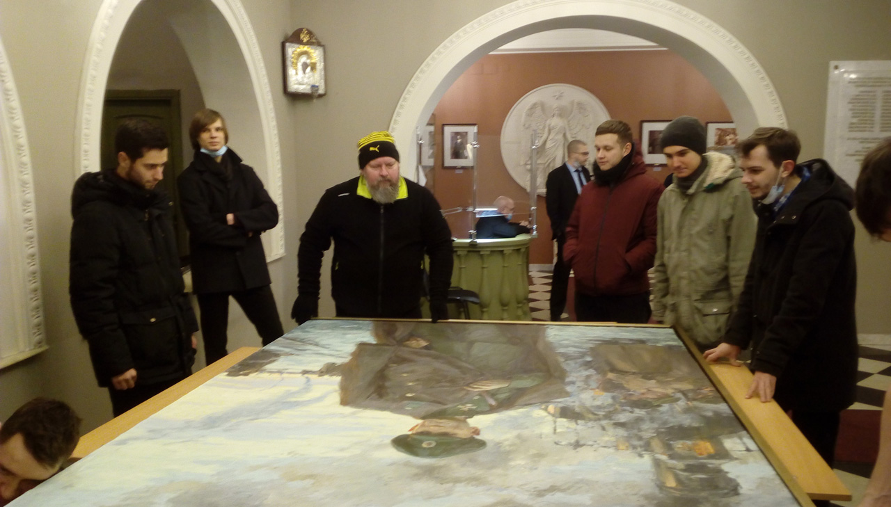 Преподаватели РАЖВиЗ Ильи Глазунова: Н.П. Сидоров, И.В. Лапин, С.Г. Москвитин, Д.А, Слепушкин, В.А. Чёрный провели занятия со студентами факультета живописи с 1 по 6 курс на выставке: «Моя история. Рюриковичи» в ЦВЗ «Манеж».