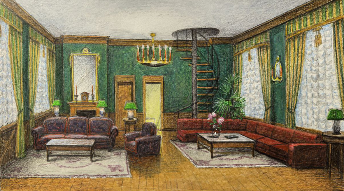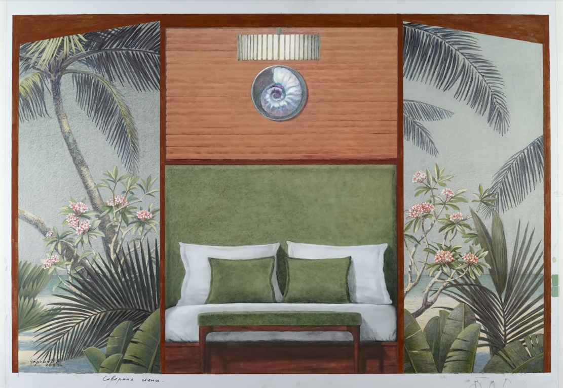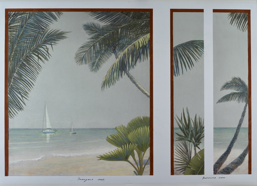 Эскизы для росписи стен спальни в стиле бунгало.
