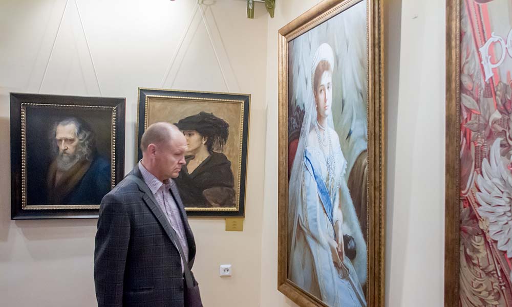 На выставке представлены работы студентов и преподавателей Российской академии живописи, ваяния и зодчества Ильи Глазунова.
