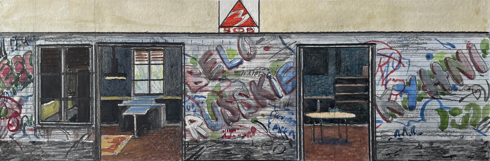 бумага, темпера, пастель 120x560 см.