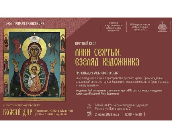 2 июня 2023 года в Белом зале Российской академии художеств состоялся круглый стол отделения искусствознания и художественной критики РАХ ''ЛИКИ СВЯТЫХ. ВЗГЛЯД ХУДОЖНИКА''.