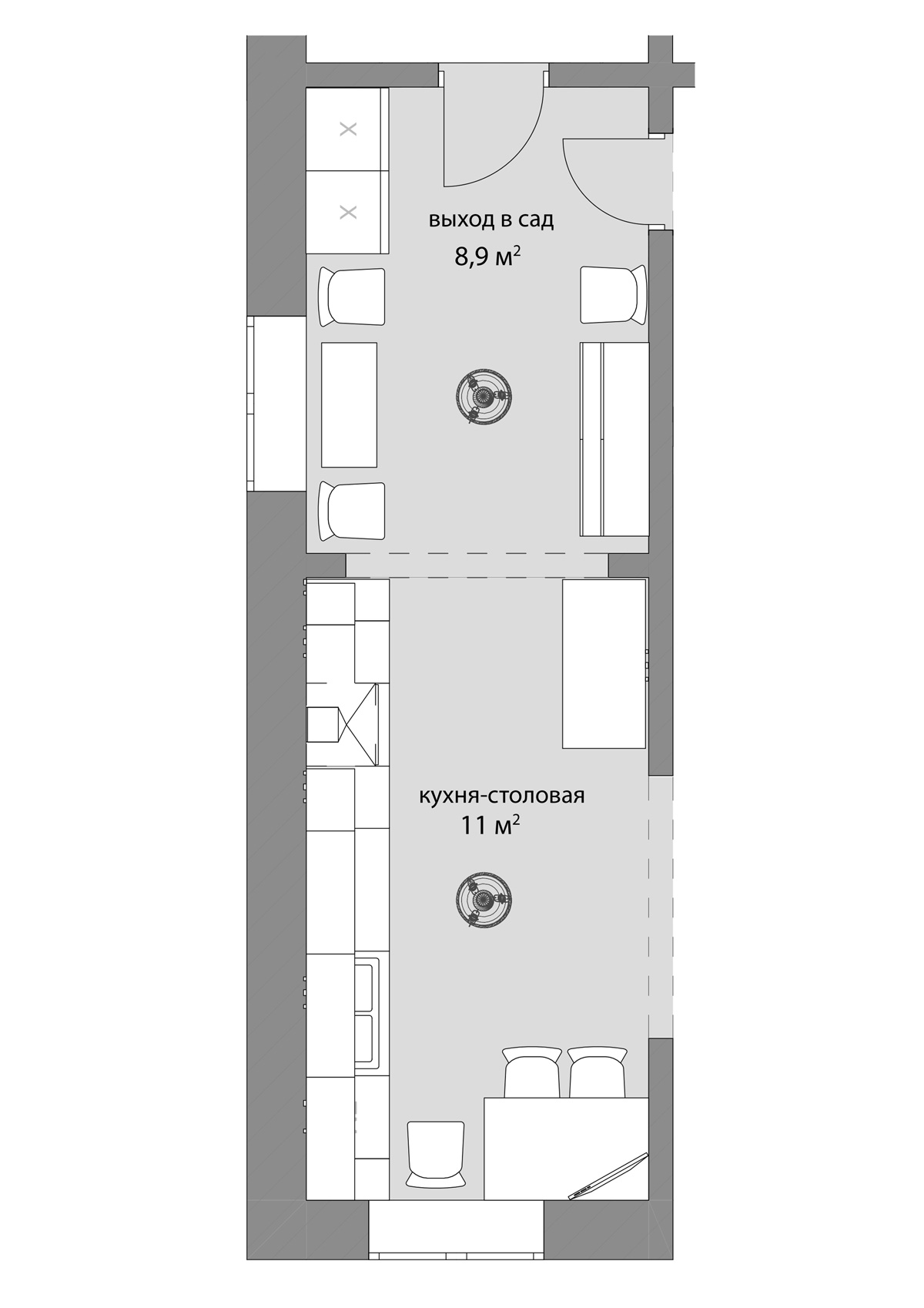 Квартира свободной планировки.